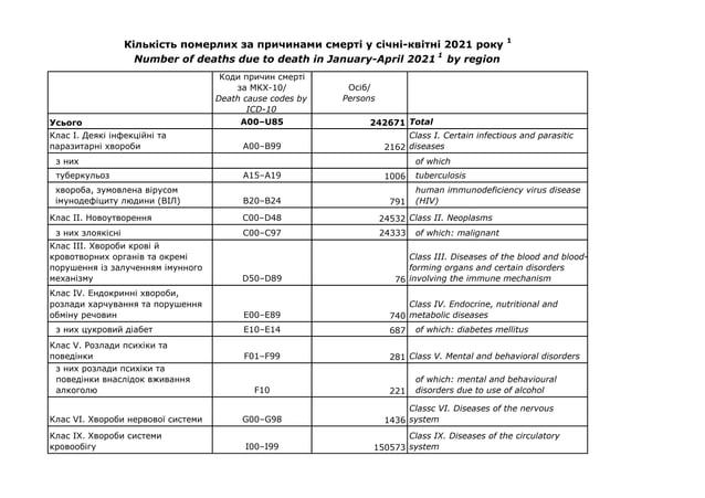 Государственная служба статистики опубликовала данные о смертности в Украине за январь-апрель 2021 г. COVID-19 стал причиной смерти 27 585 человек (11,4%)
