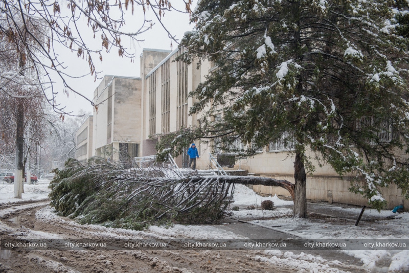 Из-за снегопада в Харькове упало более полутысячи деревьев (ФОТО)