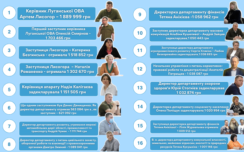 Серед чиновників Луганської ОВА, хто отримав понад мільйон зарплати, є не тільки директори департаментів, а і їхні заступники.