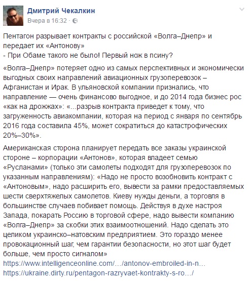 США разрывает контракты с российской «Волга–Днепр» и передает их «Антонову» ?