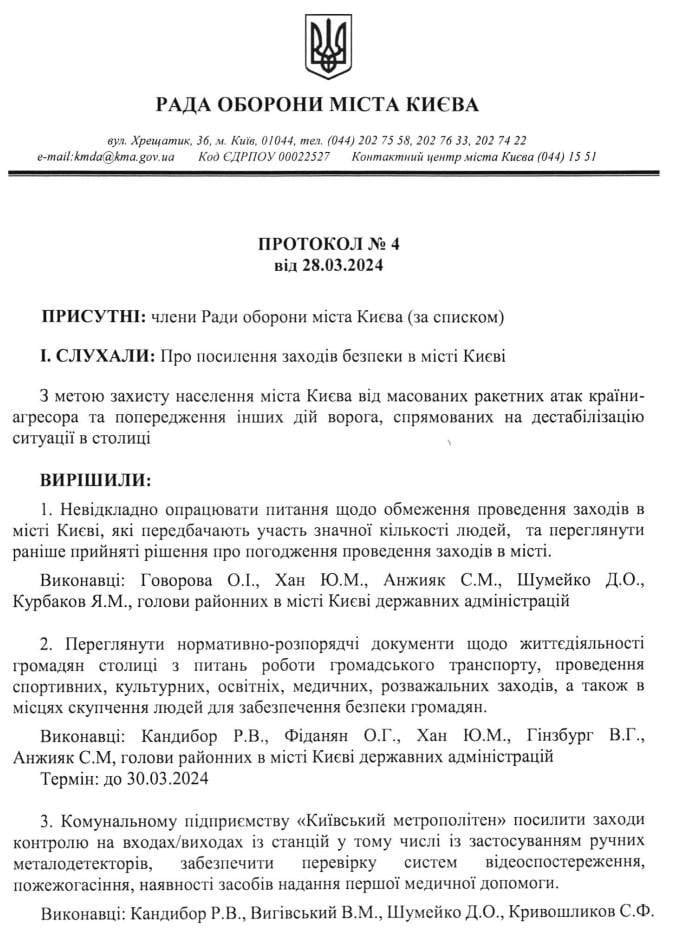 Крім того, згідно рішення Ради оборони Києва, мають обмежити масові заходи та посилено контролювати місця, де багато людей, зокрема, ТРЦ та громадський транспорт.