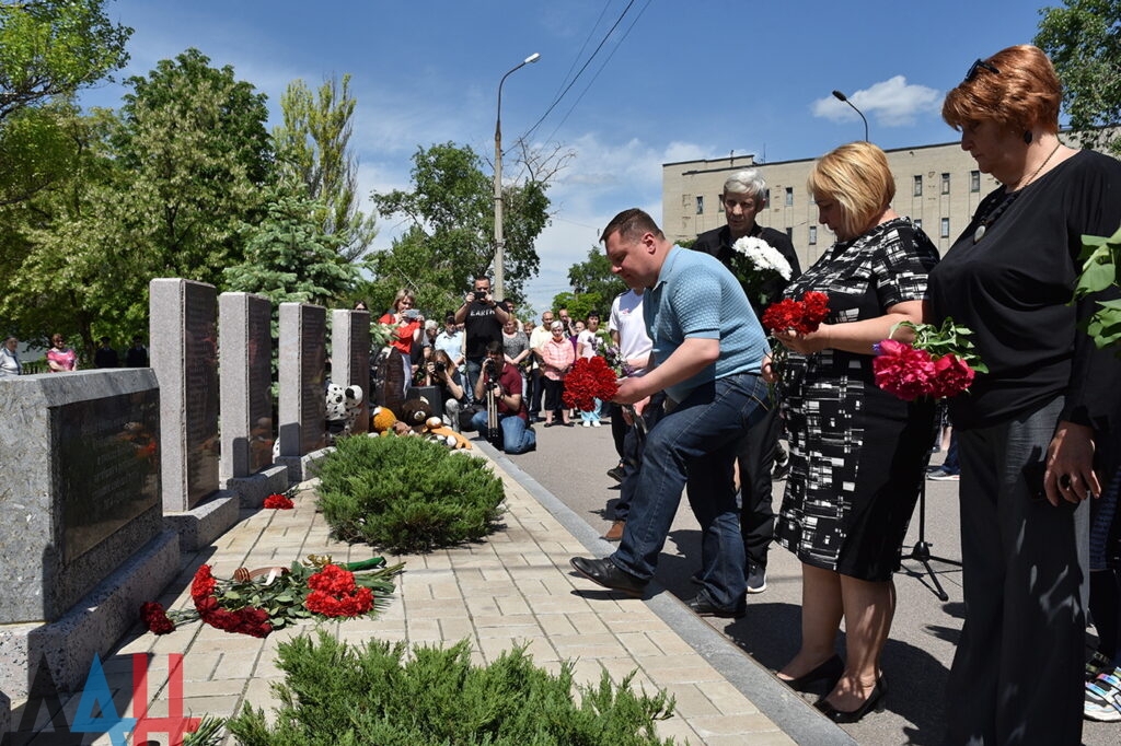 «Когда мирные жители предложили сделать здесь мемориал, мы полгода готовились. Нужно было установить имена погибших, так как на тот момент не велись записи. Люди были похоронены в разных местах, из-за обстрелов люди не могли вывезти погибших на кладбище, хоронили прямо во дворах. На тот момент мы смогли установить 224 погибших жителей», – рассказал журналистам глава администрации Горловки Иван Приходько, который в то время возглавлял Куйбышевский район.