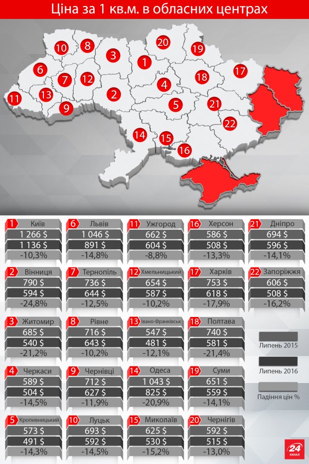 Які ціни на нерухомість в регіонах України (інфографіка)