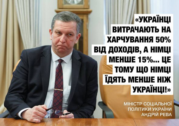 Міністр соціальної політики Андрій Рева попрікнув українців тим, що вони багато їдять. Він ще довго буде міністром?