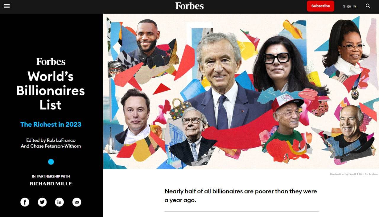 Forbes визначила першу десятку найбагатших людей світу у 2023 році :