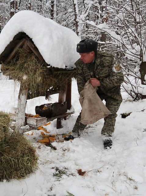 А далі розповідає про деякі нюанси годівлі диких тварин. Мисливствознавці повинні правильно розрахувати для них необхідну кількість кормів. Адже основне завдання – лише підтримати звірів у складний період, а не приручити, перетворивши таким чином на «сачків» і «нахлібників»…. Зрештою, зимовим кормом також регулюється поголів’я".