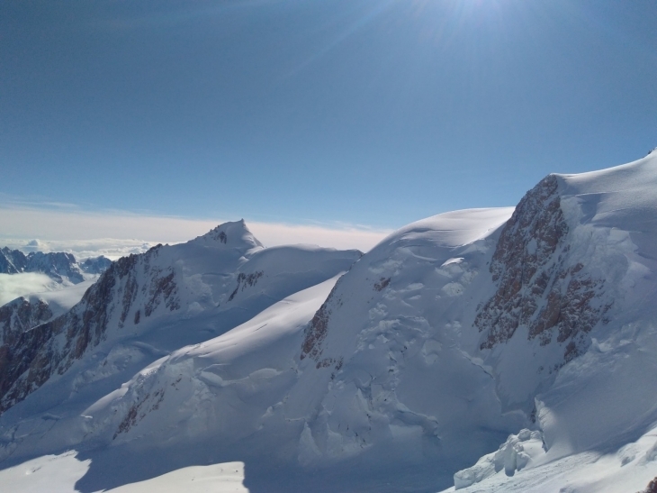 "Варто відзначити дуже розвинену інфраструктурну гілку при підйомі на Монблан: є канатні дороги, гірські трамвайчики, що піднімають вас на досить хорошу висоту. Та саме в час, коли ми здійснювали сходження, вся техніка була зупинена через ремонтні роботи, і нам довелося всі речі нести з собою та долати всю відстань пішки", – розповідає мандрівник.