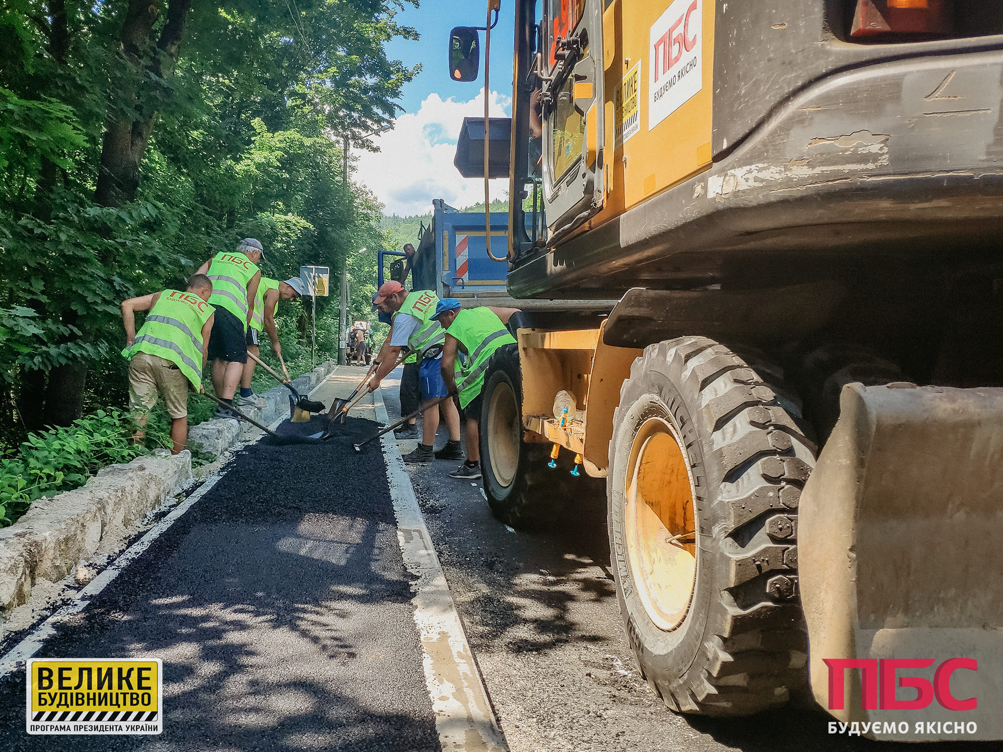 Працівники компанії влаштовують дрібнозернистий асфальтобетон на пішохідних доріжках вздовж дороги Н-09 Мукачево – Львів у місті Яремче та селі Ямна. За проєктом, дорожники мають облагородити кілька кілометрів доріжок для пішоходів, а також зупинки для громадського транспорту.