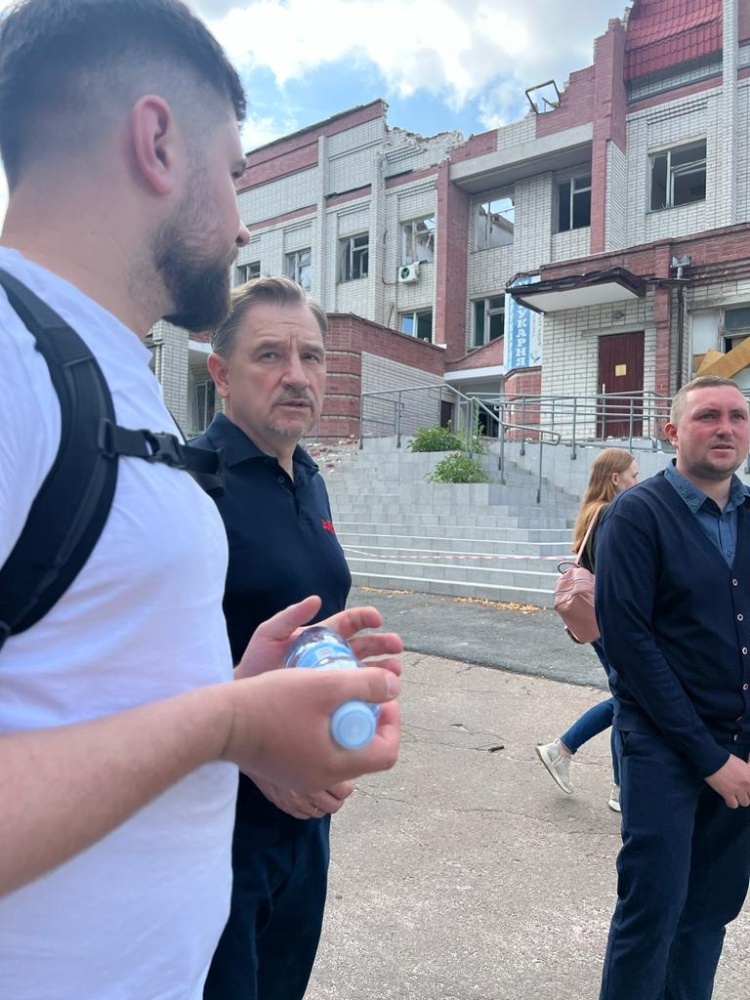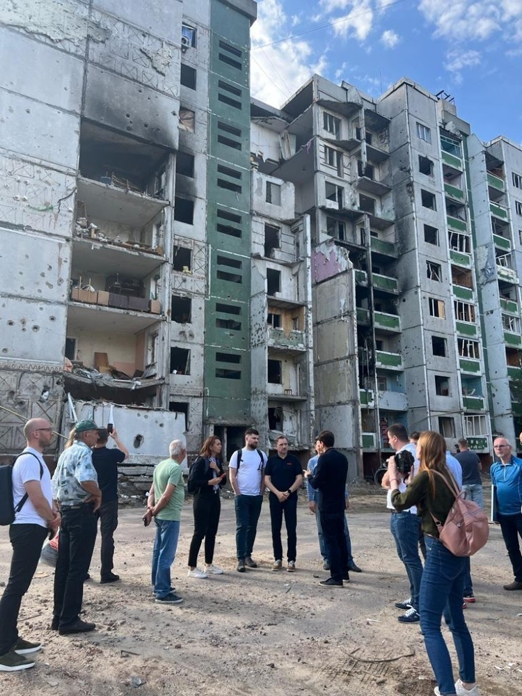 Побачили багато пошкоджень у Черніхові. Стадіон, політехнічний університет, санаторій, напівзруйновані багатоквартирні будинки та цілі квартали односімейних будинків.