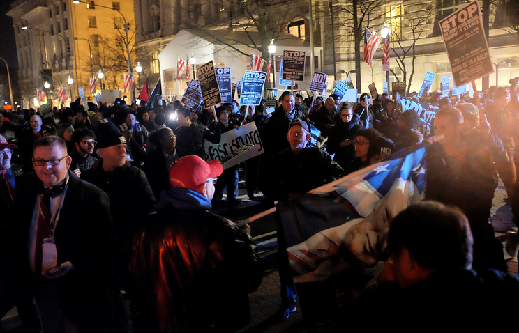 По данным АП, сотни участников акции протеста собрались у здания, где в Национальном клубе печати в честь предстоящей инаугурации Трампа проходил "Бал убожеств". Мероприятию было дано такое название в насмешку над бывшим кандидатом демократов Хиллари Клинтон, которая однажды использовала это обидное слово по отношению к сторонникам республиканца.