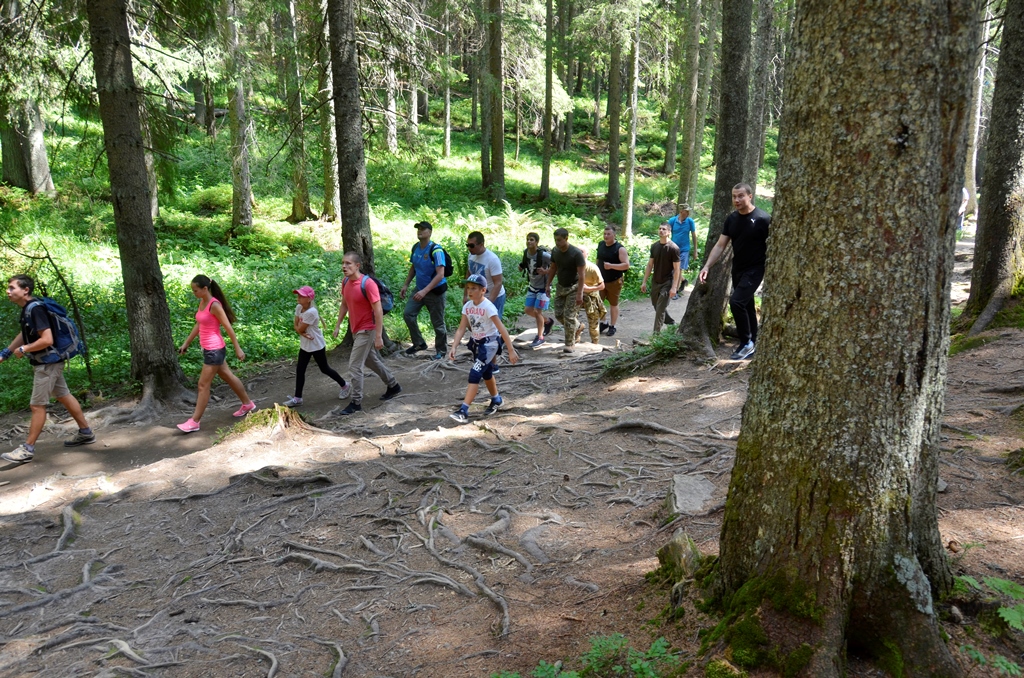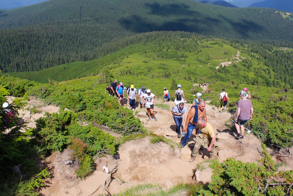 Перед тим, як підніматися безпосередньо в карпатські гори, три десятки підкорювачів прослухали інструктаж свого гіда. Опісля розпочали подолання дистанції зі спортивної бази Заросляк – найвідомішого шляху для бувалих туристів.