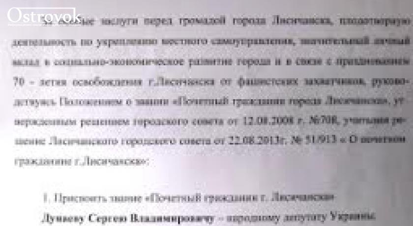 Жители Лисичанска два года не могут разобраться , является ли Сергей Дунаев Почетным гражданином