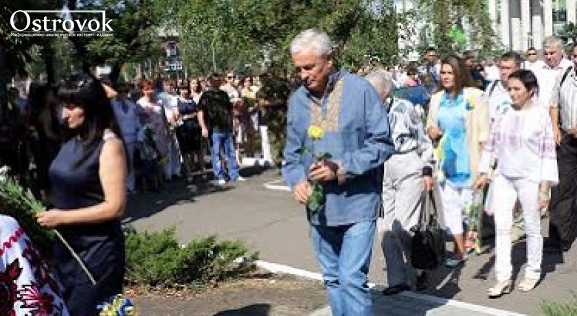 Началась она с возложения цветов к бюсту Тарасу Шевченко (большого памятника Кобзарю в городе, в отличие от Луганска, нет). На улице, которая до сих пор носит имя вождя мирового пролетариата, собралось немалое количество празднично одетых горожан.