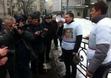 Трое сторонников Тимошенко приковали себя к забору возле Администрации