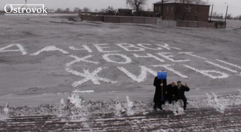 Жители Алчевска Луганской области сделали надпись на снегу неподалеку от местного металлургического комбината "Алчевск хочет жить!".