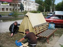 В Луганске Пригеба проводит акцию протеста в защиту прав луганчан. Требует, чтобы к нему вышел Симоненко