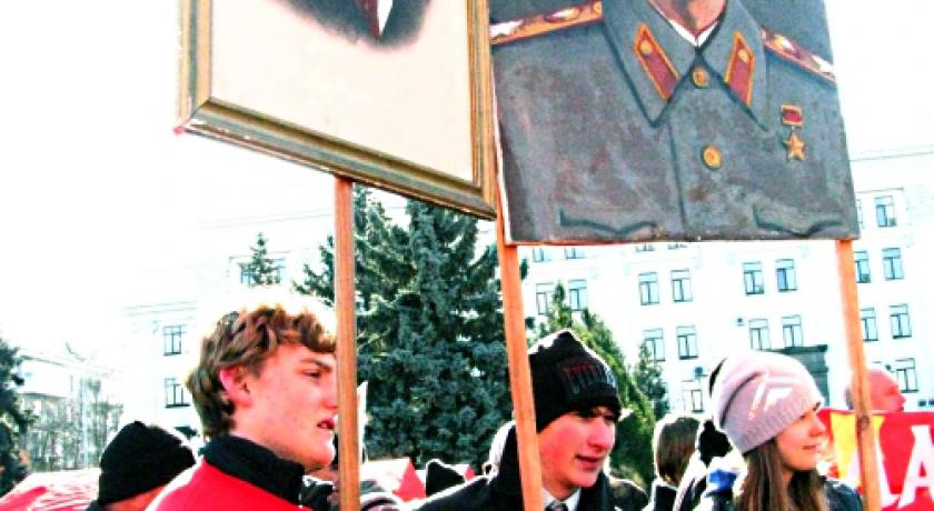 Около 1,5 тыс. человек собралось 7 ноября у памятника Ленину в Луганске, на митинг, посвященный празднованию 94-й годовщины Октябрьской революции, передаёт корреспондент "ОстроВ".
