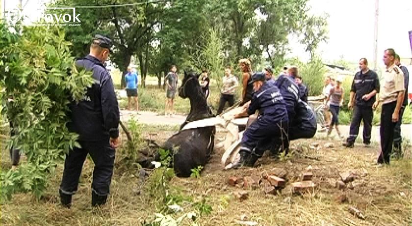 В службу «101» поступило сообщение о том, что в районе воинской части Каменнобродского района в яму провалилась лошадь. Звонили хозяева животного. К месту происшествия сразу выехали спасатели.