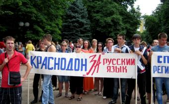 Сегодня, перед экстренной внеочередной сессией Луганского облсовета, которая начала свою работу в 10-00, ПР и «Молодые регионы» провели митинг в поддержку русского и региональных языков.