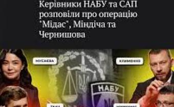 ННАБУ та САП розкрили схему діяльності злочинної організації, до якої входили чинні та колишні посадовці енергетичної сфери. Керівниками організації названо Тимура Міндіча, співвласника «Кварталу 95» та близького приятеля Володимира Зеленського, а також Олександра Цукермана. Деталі операції «Мідас», а також її вплив на внутрішньополітичну ситуацію в державі обговорили у новому випуску «УП. Чат» керівник департаменту розслідувань УП Михайло Ткач, директор НАБУ Семен Кривонос, керівник САП Олександр Клименко та головна редакторка УП Севгіль Мусаєва.АБУ та САП розкрили схему діяльності злочинної організації, до якої входили чинні та колишні посадовці енергетичної сфери. Керівниками організації названо Тимура Міндіча, співвласника «Кварталу 95» та близького приятеля Володимира Зеленського, а також Олександра Цукермана. Деталі операції «Мідас», а також її вплив на внутрішньополітичну ситуацію в державі обговорили у новому випуску «УП. Чат» керівник департаменту розслідувань УП Михайло Ткач, директор НАБУ Семен Кривонос, керівник САП Олександр Клименко та головна редакторка УП Севгіль Мусаєва.