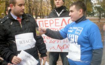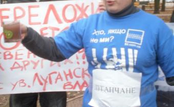 26 октября возле здания Луганской облгосадминистрации общественная организация «ГРОМ» показала с помощью «спектакля», как, по их мнению, неэффективно власть использует государственные средства на решение проблем загрязнения водных ресурсов Луганской области.
