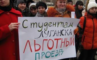 Студенческая молодежь г. Луганска обратилась к Луганскому городскому голове Сергею Кравченко и депутатам горсовета с требованием предусмотреть средства на льготный проезд в местном бюджете на 2013 г. для обеспечения прав студентов согласно действующему законодательству.