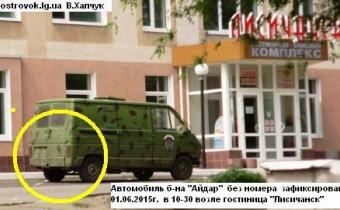 Также 1 июня возле гостиницы «Лисичанск» рядом с мероприятием проводимым для детей был в очередной раз зафиксирован еще один автомобиль без номеров того же батальона «Айдар».