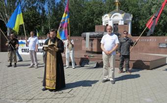 Народ, судя по изменившейся тематике возгласов, на такой вариант был согласен. Все же ризоносцев вытолкали «за кулисы»; оставшийся в одиночестве на авансцене капеллан батальона «Донбасс», священник Киевского патриархата Андрей, отчитал свою молитву на украинском, попутно выразив сожаление по поводу возникшего конфликта.