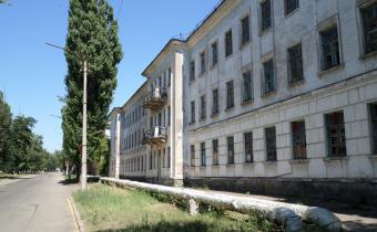 Что удивило – в парке посреди зарослей сохранилось множество асфальтированных дорожек. Одна вывела меня к политехническому колледжу. Оригинальное здание, тоже украшенное колоннами по фасаду, тем не менее, стоит без центрального входа. То есть вообще без дверей, хотя и с окнами. Чтобы попасть внутрь, нужно пройти во двор и протиснуться сквозь узкие металлические двери. Впрочем, такой задачи я себе не ставил.