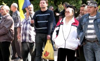 Из-за тяжелого материального положения непосредственно работников предприятия приехало немного, однако их поддержали земляки из находящегося поблизости палаточного городска чернобыльцев