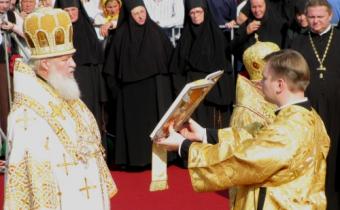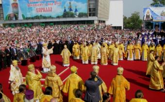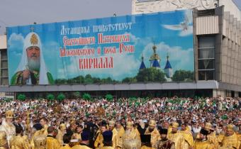 Патриарх Московский и всея Руси Кирилл отслужил в Луганске божественную литургию. По оценке правоохранителей, послушать патриарха собралось около 15 тыс. человек.
