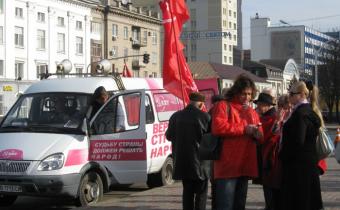 «Я хотел бы поблагодарить каждого жителя Луганской области за тот голос, который они отдали за Коммунистическую партию Украины. Поверьте, что тот бюллетень, который вы опустили в урну, те депутаты, которые будут представлены сегодня в Верховной Раде, они будут работать только в ваших интересах. По итогам выборной кампании можно подвести определенные выводы: в очередной раз обанкротившаяся власть сфальсифицировала результаты выборов, практически проигнорировав мнение подавляющего большинства людей», - обратился к собравшимся 1-й секретарь Луганского обкома КПУ Спиридон Килинкаров.