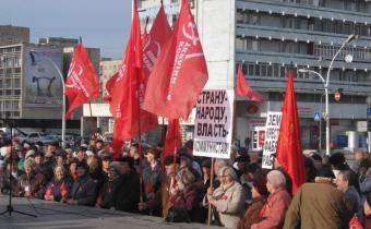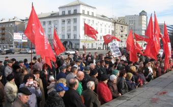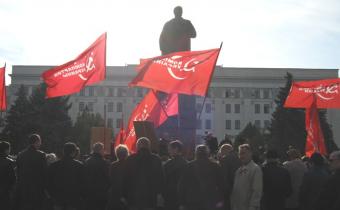 Коммунисты провели торжественный митинг в центре Луганска, посвященный 95-й годовщине Великой Октябрьской социалистической революции. Об этом сообщает корреспондент «Ostrovok».