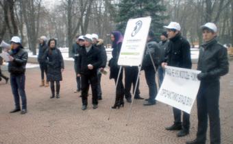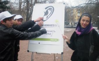Акцию «Ухо власти» провели возле облгосадминистрации представители молодёжного состава Луганской областной организации политической партии «Фронт Змiн». Об этом сообщает корреспондент «ОстроВ Лугань [1]».