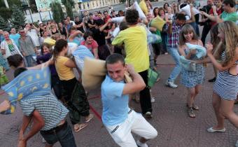 4 августа, в субботу, в Луганске на площади возле памятника Т. Шевченко состоялся массовый открытый бой подушками.