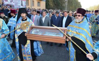 Во время встречи Плащаницы Пресвятой Богородицы состоялся Крестный ход от храма Святой Великомученицы Татианы УПЦ (ул. Херсонская, г. Луганск, рядом с ТРЦ «Украина») в Свято-Владимирского кафедрального собора (пл. Горького, 5, г. Луганск). В честь прибытия святыни на Луганщину в кафедральном соборе состоялось посвященное этому событию торжественное богослужение.