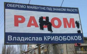 Билборд с призывом экс-депутата Луганского облсовета Владислава Кривобокова к «майбутньому під знаком якості» был подвергнут акту вандализма. Об этом сообщает газета «ХХІ век».