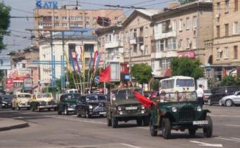 Праздничный кортеж раритетных автомобилей отправился по маршруту вдоль непрерывной ленты. Следующей его остановкой была площадь Героев Великой Отечественной войны, где были возложены цветы к Пилону Славы и Могиле Неизвестного солдата. Далее кортеж прибыл к Памятнику воинам-освободителям.