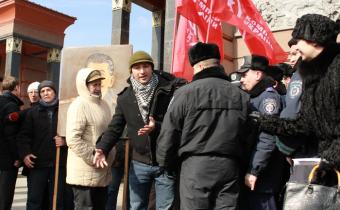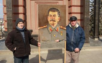 Праздничный перформанс «Сталина на нас нет!», посвященный 60 годовщине со дня смерти Сталина, состоялся сегодня, 5 марта, у памятника борцам Революции. Об этом сообщает корреспондент Ostrovok.