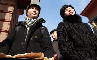 В рамках акции «Сталина на нас нет!» состоялись выступления поэтов Елены Заславской и Ярослава Минкина.