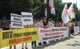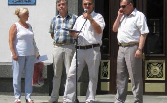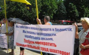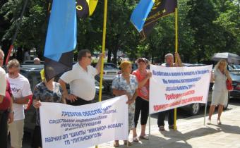 «В очередной раз мы заявляем, что в Луганской области не работают нормы Конституции. Облгосадминистрация, которая является гарантом функций Президента не обеспечивает гражданам защиты, в т. ч. не обеспечивается достойный уровень оплаты труда шахтеров, а успешные угольные объединения «Ровенькиантрацит», «Свердловантрацит» за копейки отданы в концессию олигархам», - заявил на митинге лидер СОГ «Трудовое движение «Солидарность» Константин Ильченко.