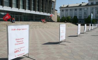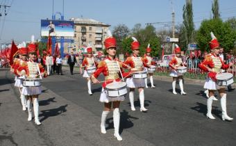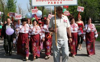 С 9.30 состоялось шествие колонны, которая прошла по ул. Советской от сквера Молодой Гвардии, возле памятника Т. Шевченко (сквер Героев ВОВ) и спустилась к памятнику В. Ленина (Театральная площадь).