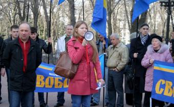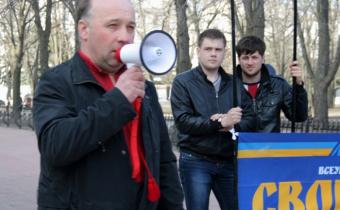 «Нынешняя власть говорит, что мы будто бы фашисты. Но пусть посмотрят, сколько людей умерло при власти регионалов. Мы за социальную и национальную справедливость. Они хотят сделать из нас рабов и кто, если не мы, организует протест оккупантам и защитит украинский язык», - сказал член Луганского областного комитета ВО "Свобода" Александр Кобзев.