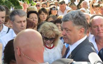 Через полчаса состоялись краткий митинг – и открытие памятника генералу Александру Радиевскому, который освобождал ровно год назад Северодонецк и погиб при освобождении Лисичанска. Петр Порошенко свой цветок возлагал в одиночестве, причем довольно долго стоял у подножья, преклонив, по-офицерски, одно колено. После чего смешал все карты своей сверхбдительной охране, когда вдруг повернул в толпу и оказался в сверхплотном окружении людей. Правда, это были все те же люди, которые час назад восторженно хлопали в его адрес, но все-таки…