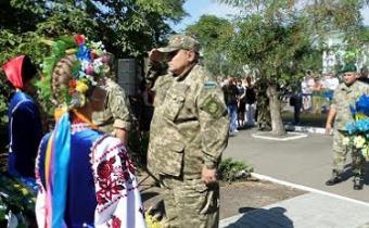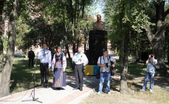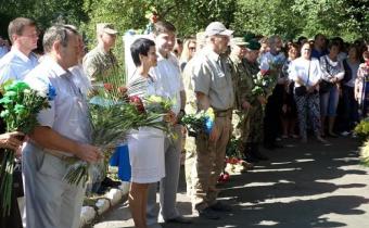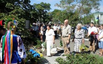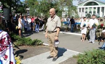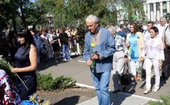 В отличие от вчерашнего Дня Государственного Флага Украины официальные лица не выступали с речами. После того, как председатель Луганской областной государственной администрации Георгий Тука, его заместители и руководители города (среди которых, как и вчера, сиял своим отсутствием мэр Валентин Казаков) положили свои букеты, цветы к подножию бюста могли нести все желающие без выделения чинов и воинских званий .
