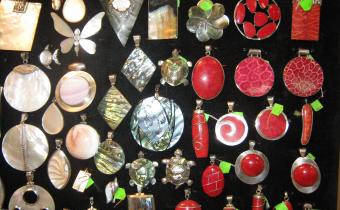 Все желающие могут свободно войти и насладиться потрясающим зрелищем. Здесь есть изделия на любой вкус: бусы, серьги, браслеты, гарнитуры, подвески, кулоны и кольца из агата, яшмы. янтаря, сердолика, авантюрина, жемчуга и других камней, и все это - продается. Прекрасная возможность для женщин порадовать себя, а для мужчин – своих любимых.