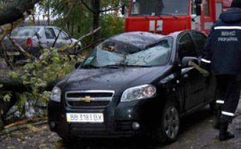 18 октября в г. Ровеньках в районе дома №4 кв. Шахтерского на автомобиль «Шевроле-Авео», припаркованное возле дома, упало стоящее рядом дерево.