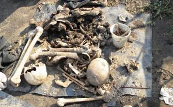 Предположительно это немецкие солдаты (определили по наличию зубной пломбы и форменной пуговицы). Обнаружено семь скелетов. Сегодня на место найденного захоронения прибыли специалисты из Луганска. Ведутся поисковые работы.