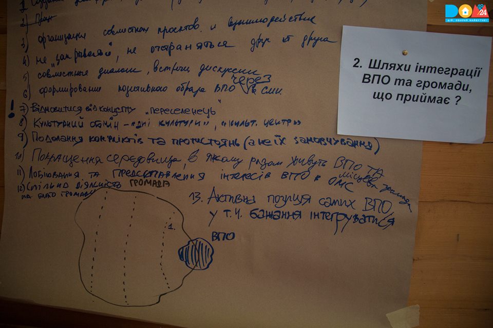 «После встречи в Киеве с организациями, которые работают с переселенцами, мы подумали: а почему бы нам не встретиться и в регионах? Мы хотим создать местные сообщества на принципах сотрудничества, чтобы выяснить, где мы не дорабатываем или перерабатываем Почему бы не провести подобные встречи в Харькове, Черкассах, в Херсоне? Не создать местные осередки?. …», - поясняла цель встречи Татьяна Лялька, координатор ГО «Крым SOS».