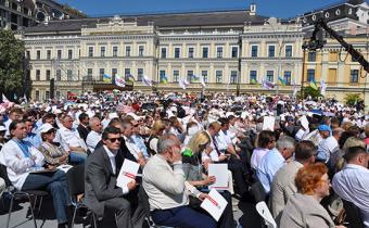 12 мая объединенная оппозиция собрала Форум на котором представила программу своих действий на выборах и после них. О своем видении будущего оппозиционеры решили рассказать на небольшом пространстве Михайловской площади, аккурат перед стенами Михайловского Златоверхого Собора, почти впритык к офису СКМ и монументальному зданию МИД Украины.